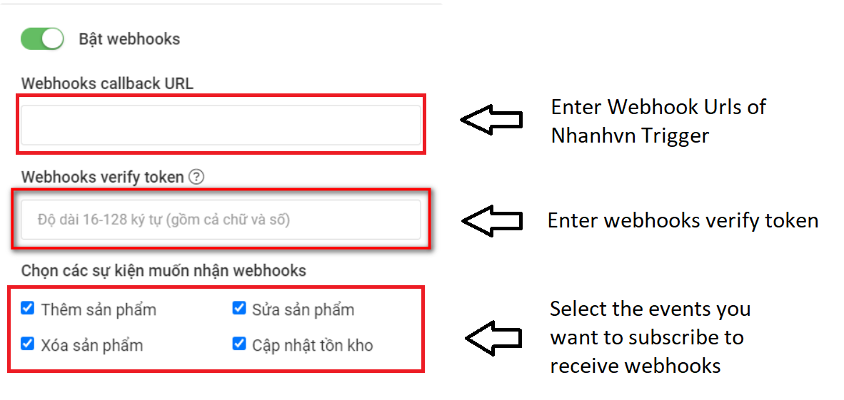 Check "Bật webhooks".