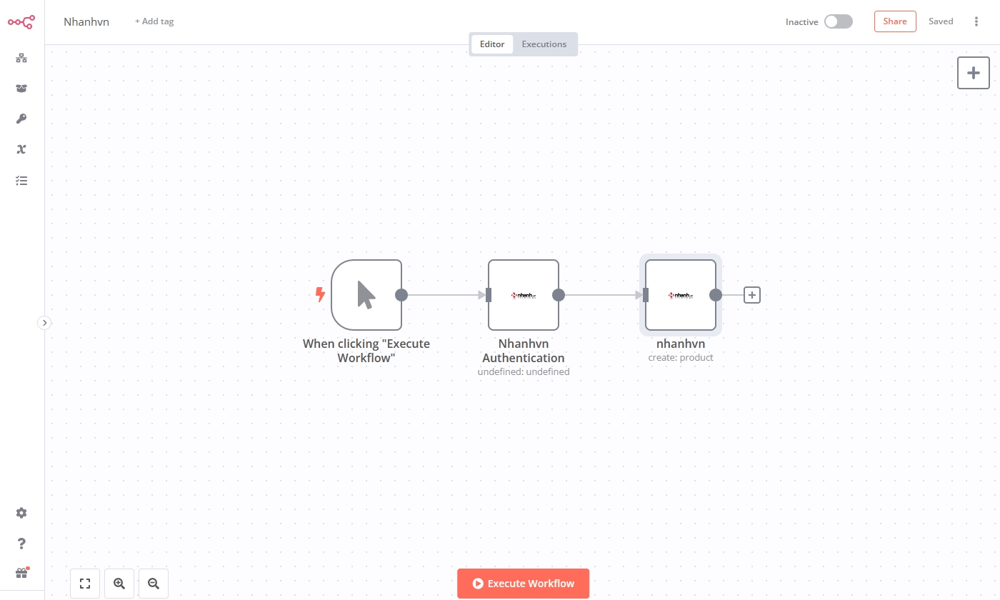 Cuối cùng, bạn click vào nút Execute node để chạy Nhanhvn node thực thi Create Or Update Product action.