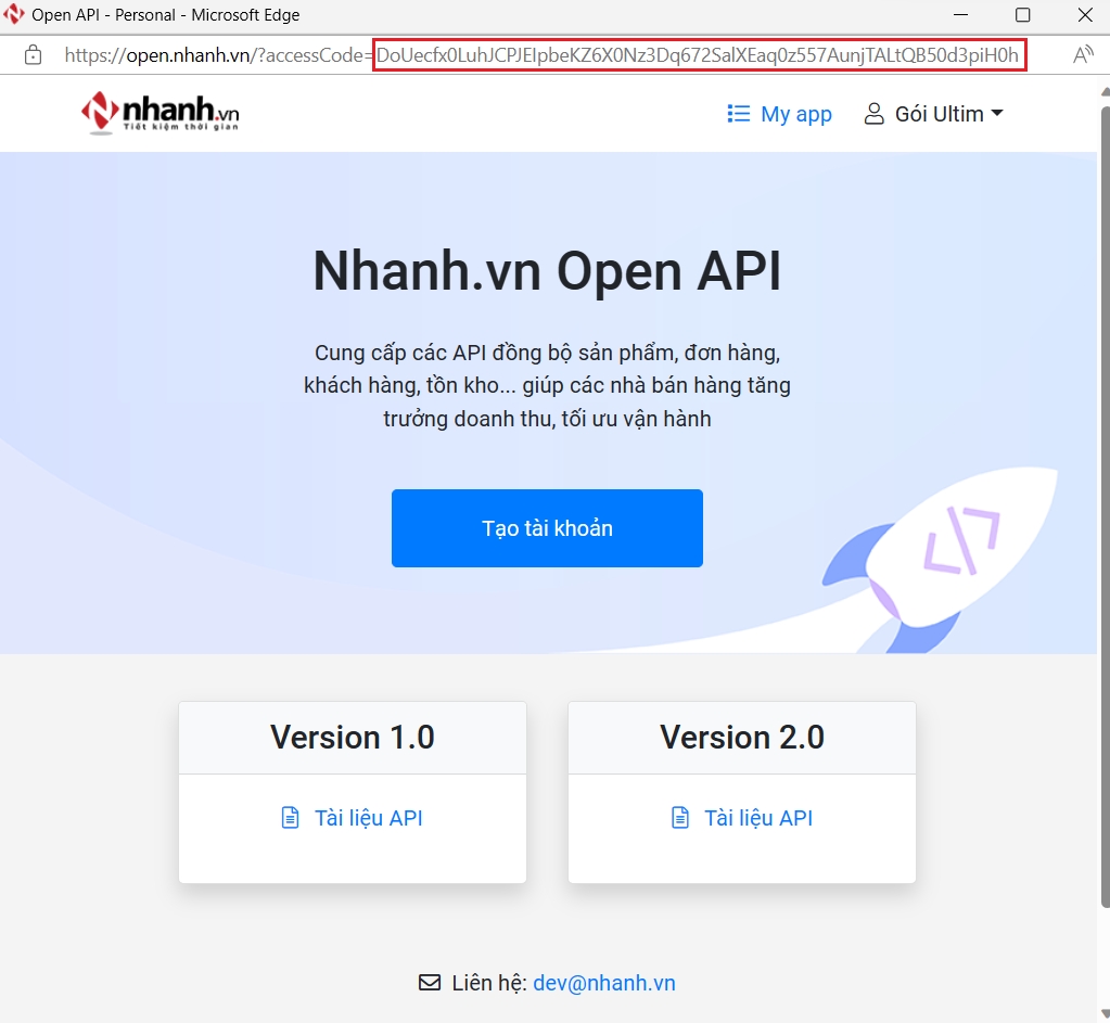 Sau khi nhấn nút "Đồng ý", trình duyệt sẽ chuyển hướng đến Redirect URL đính kèm với access code. Access code của bạn là xâu chuỗi sau "accessCode=". Bạn copy mã đó để sử dụng trong bước tiếp theo.